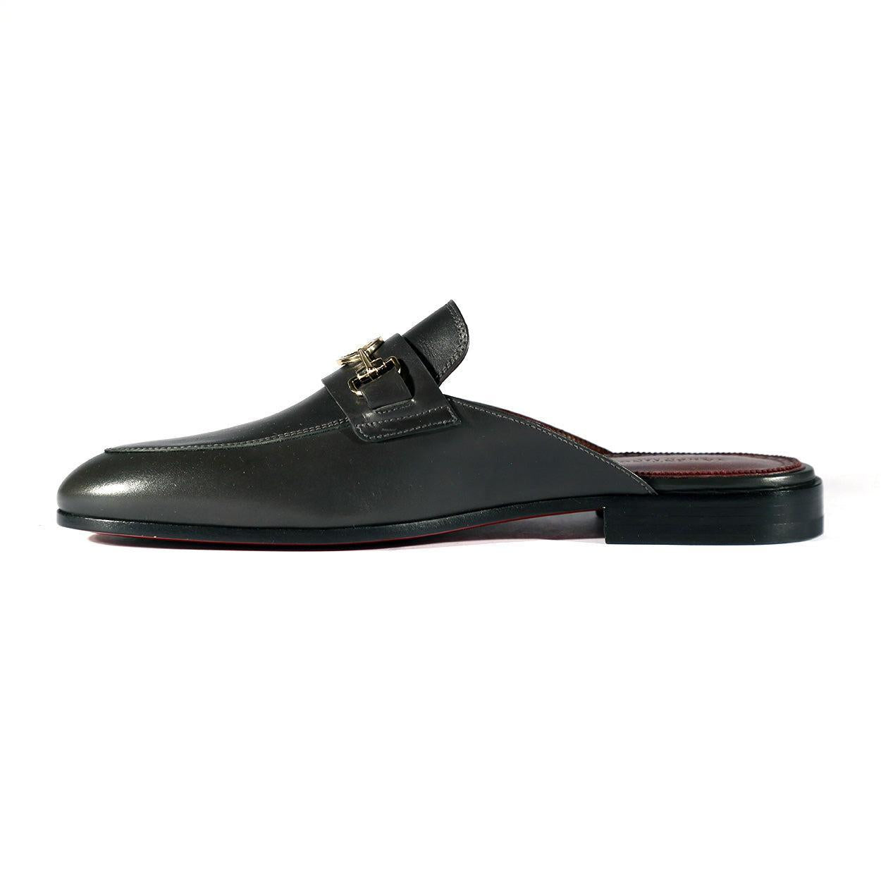 Valentino 19700/M Men's Shoes Gray Calf-Skin Leather Slipper Mules (VAL1001)